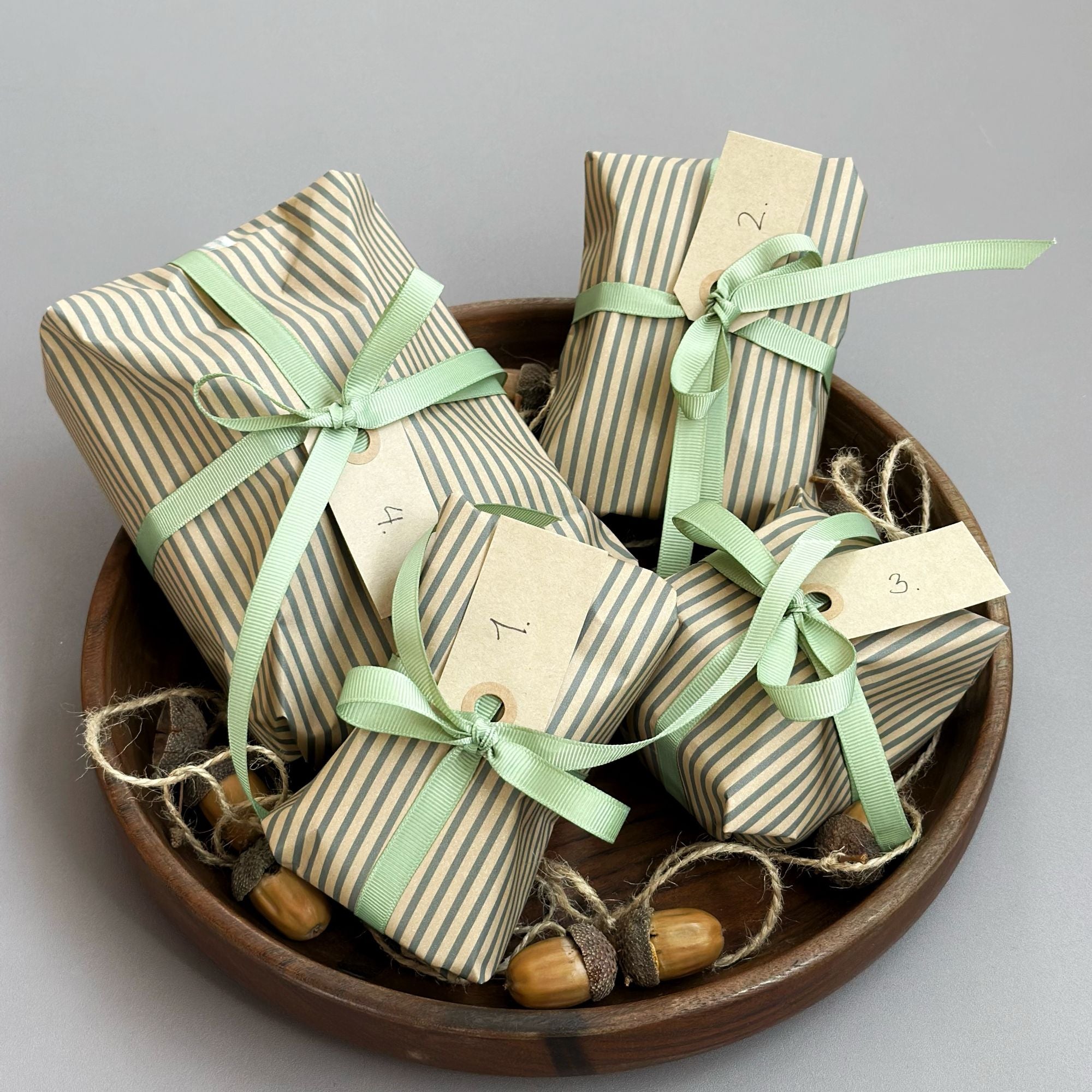 Åbn én pakke hver søndag i advent, og nyd oplevelsen af naturligt velvære, duftende pleje og små øjeblikke af ro.