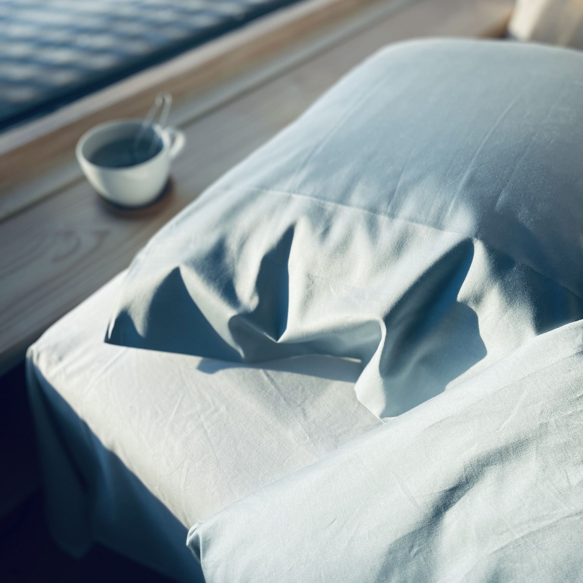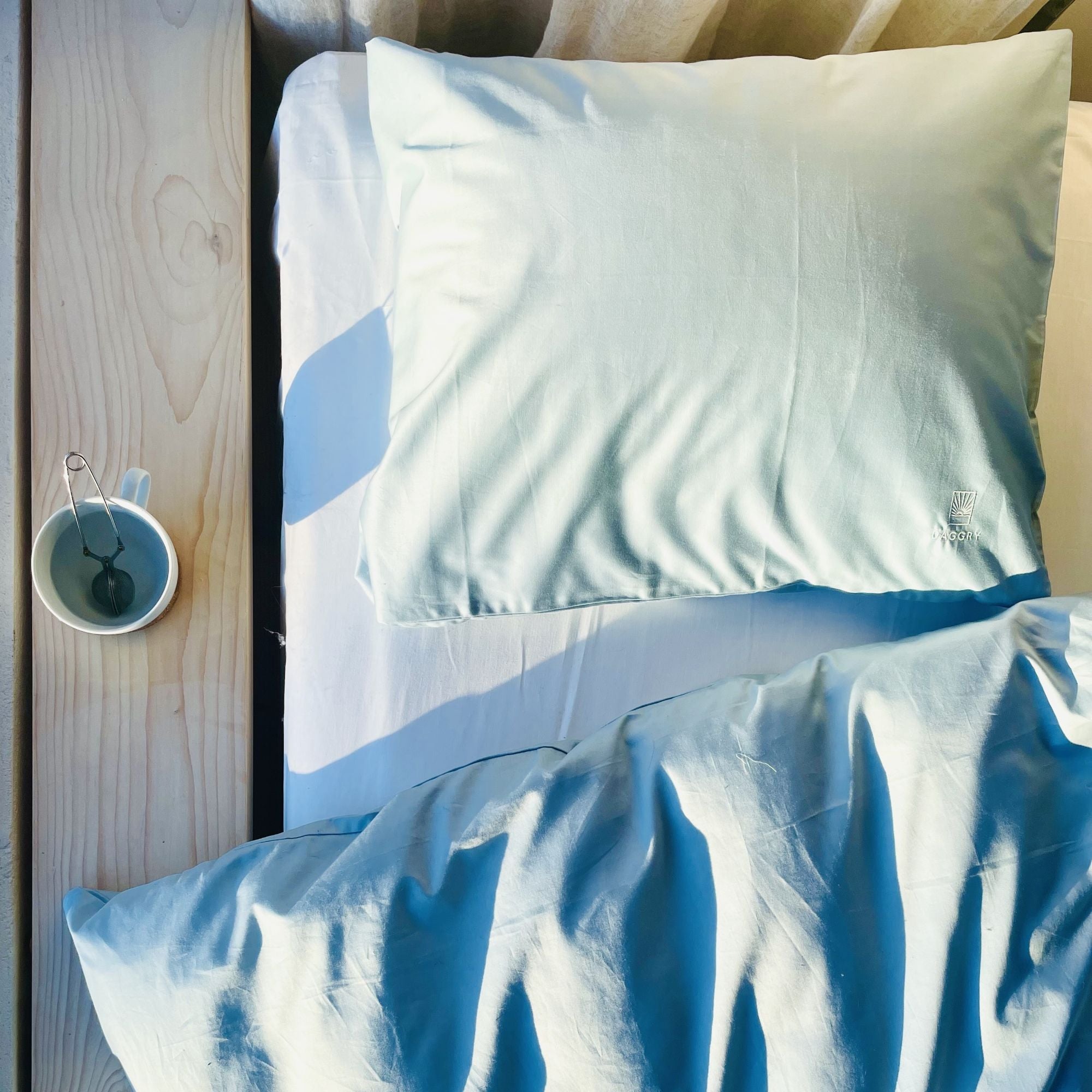 Morning Blue er et naturligt og miljøbevidst sengetøj i økologisk bomuld – skabt til ro og komfort.