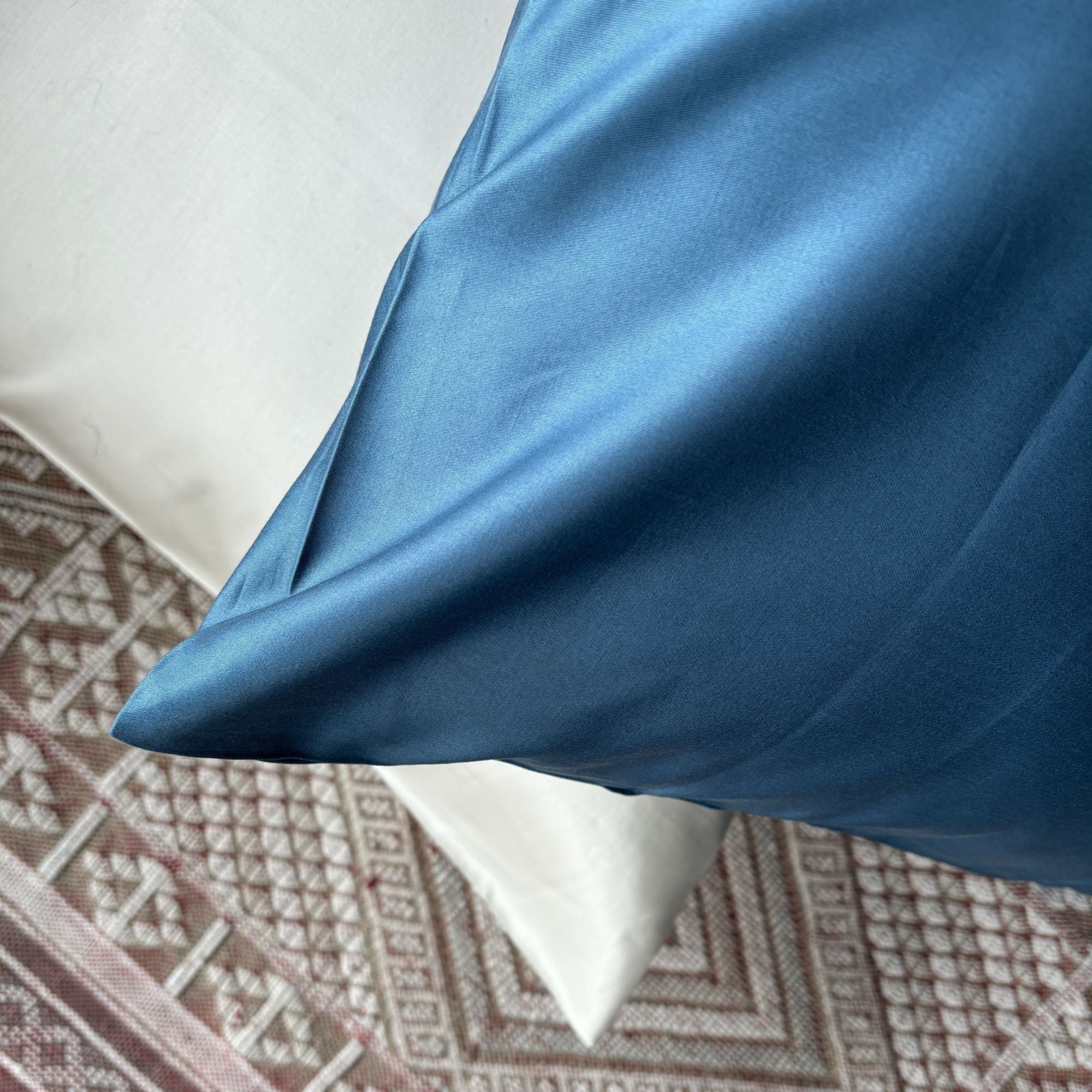 Sengetøjet er satinvævet af 81 % økologisk bomuld og 19 % genanvendt bomuld – en kombination, der giver et let, blødt og slidstærkt udtryk. Den dybe blå nuance lader tankerne falde på kystens rolige klipper og havets kolde morgentoner. En farve, der bringer balance, ro og en let kølig fornemmelse ind i soveværelset – perfekt til dig, der foretrækker et afdæmpet og harmonisk udtryk.