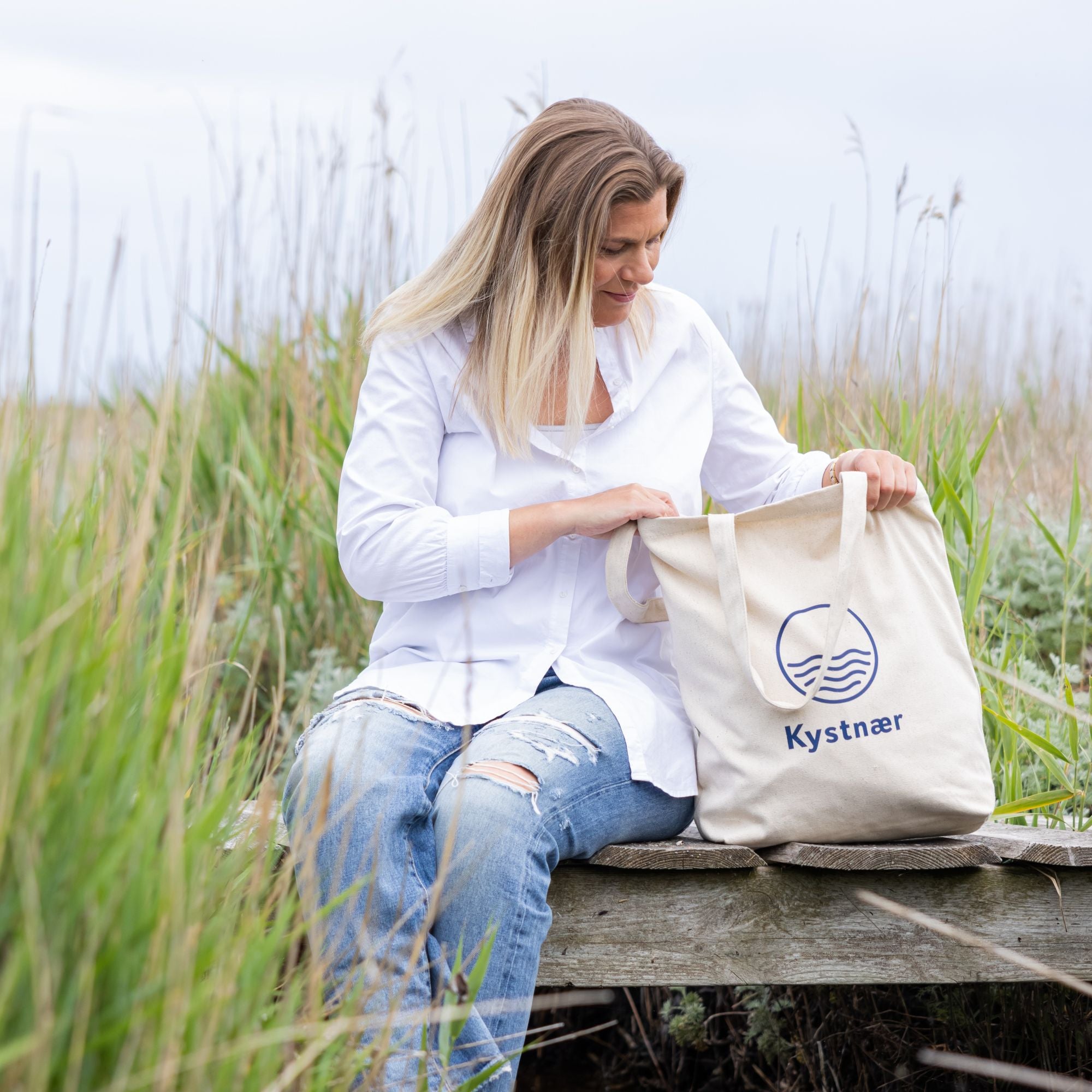 En rummelig mulepose, du kan bruge igen og igen. Kystnærs ekstra store mulepose er fremstillet af kraftig, ufarvet bomuld og trykt med GOTS- og OEKO-TEX-certificerede farver. En kombination af funktionalitet og omtanke – skabt til dig, der gerne vil vælge naturligt i hverdagen.