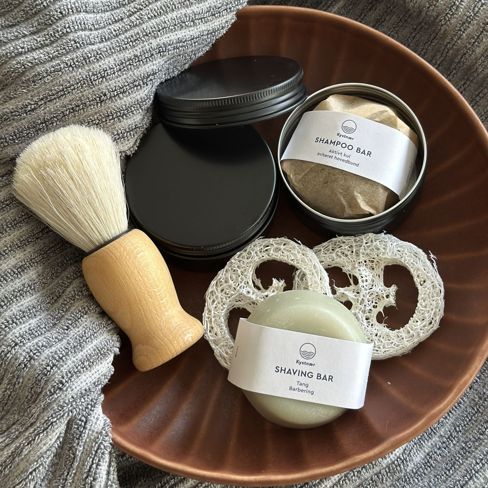 Gentleman gavesæt med aktivt kul er skabt til manden der ønsker en enkel og effektiv plejerutine med naturlige ingredienser og et rent udtryk. Pakken kombinerer produkter til både hår og barbering og giver en naturlig og forfriskende oplevelse, der efterlader huden blød og håret frisk.