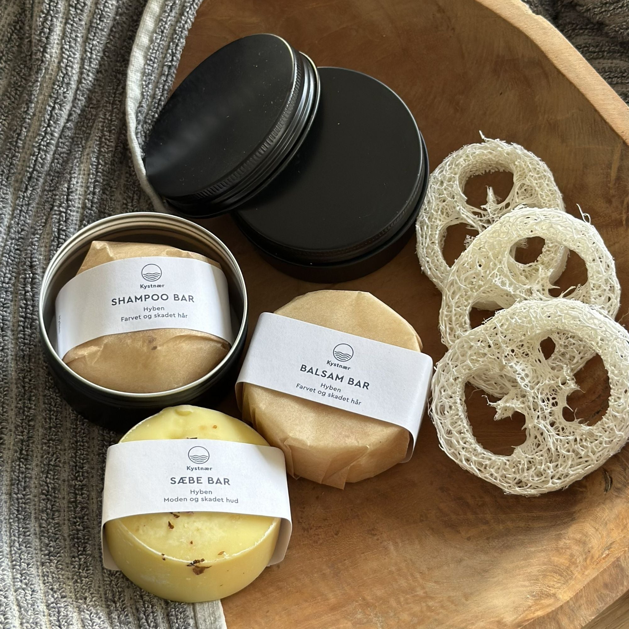 Pakken kombinerer hår- og kropspleje med omtanke for både dig og miljøet. Hvert produkt er håndlavet med naturlige ingredienser, hvor hybenens genopbyggende egenskaber styrker håret, plejer huden og tilfører fugt.