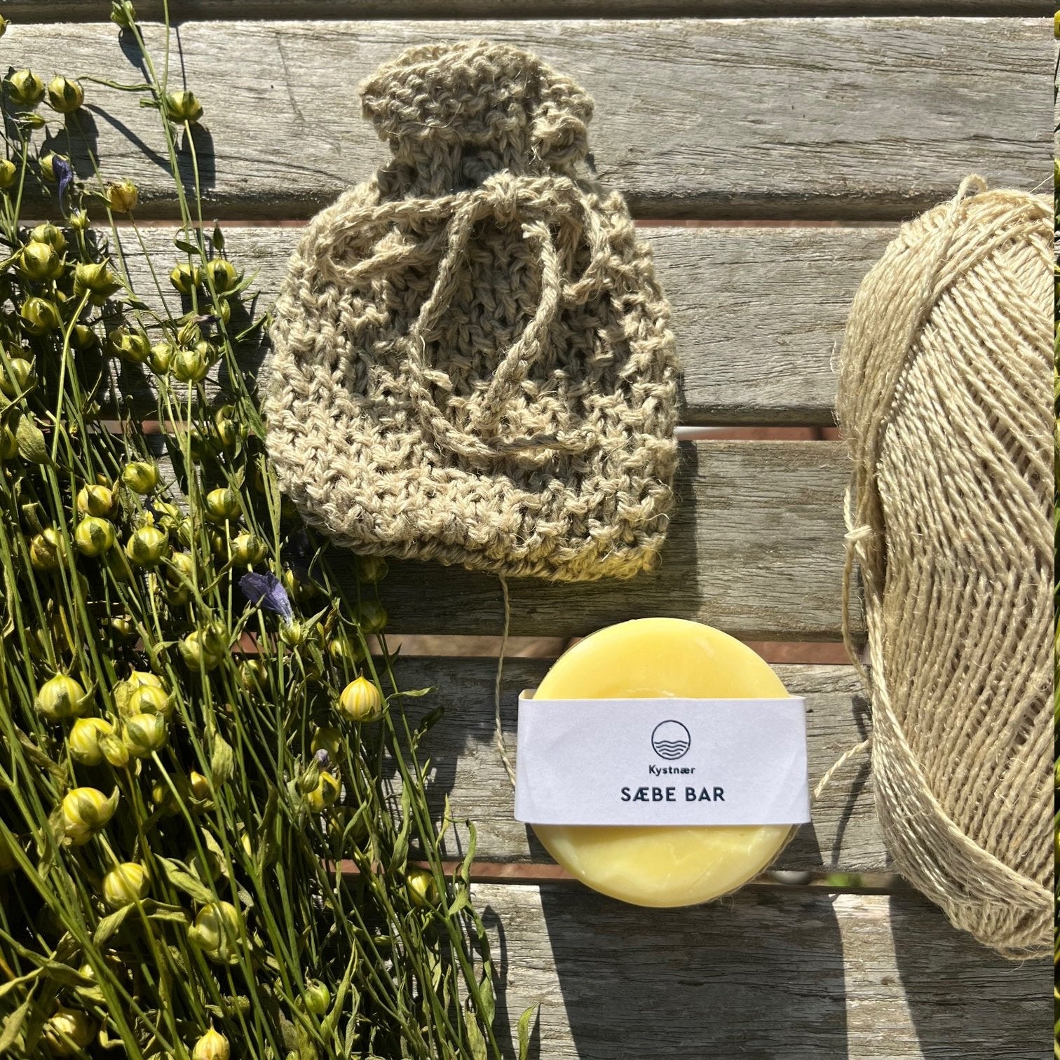 Vil du selv strikke en sæbepose i 100 % hør – ligesom dem vi har i webshoppen? Med denne opskrift, lavet af Kystnærs nabo Lilian, kan du nemt komme i gang med dit eget lille stykke håndarbejde til badeværelset.