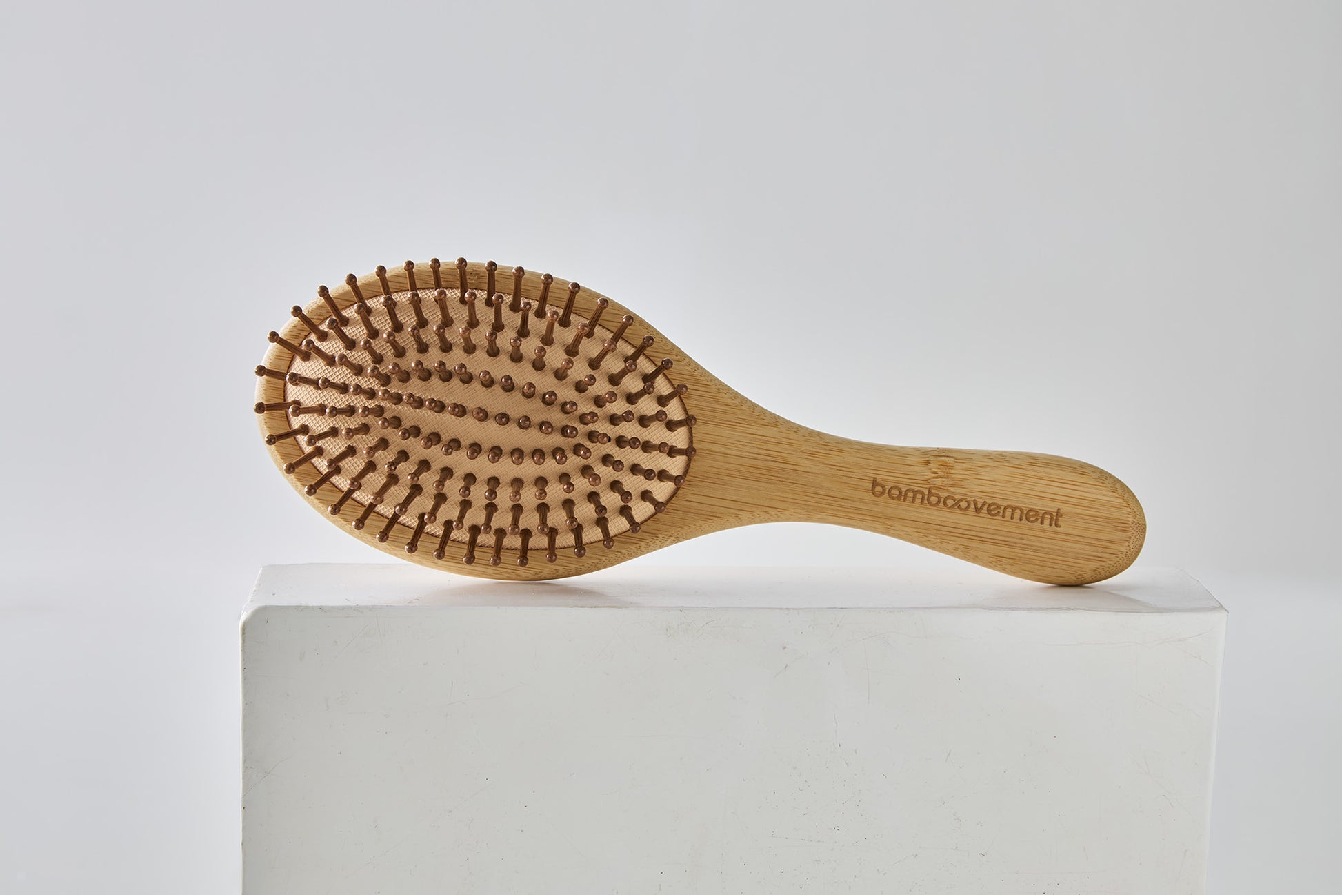 Med denne brede bambus hårbørste fra Bamboovement får du et naturligt redskab, der er skånsomt mod både hår og hovedbund. De afrundede bambuspigge er antistatiske og glider let gennem håret uden at knække eller rive, samtidig med at de giver en blid massage af hovedbunden, som øger blodcirkulationen og kan fremme sund hårvækst.