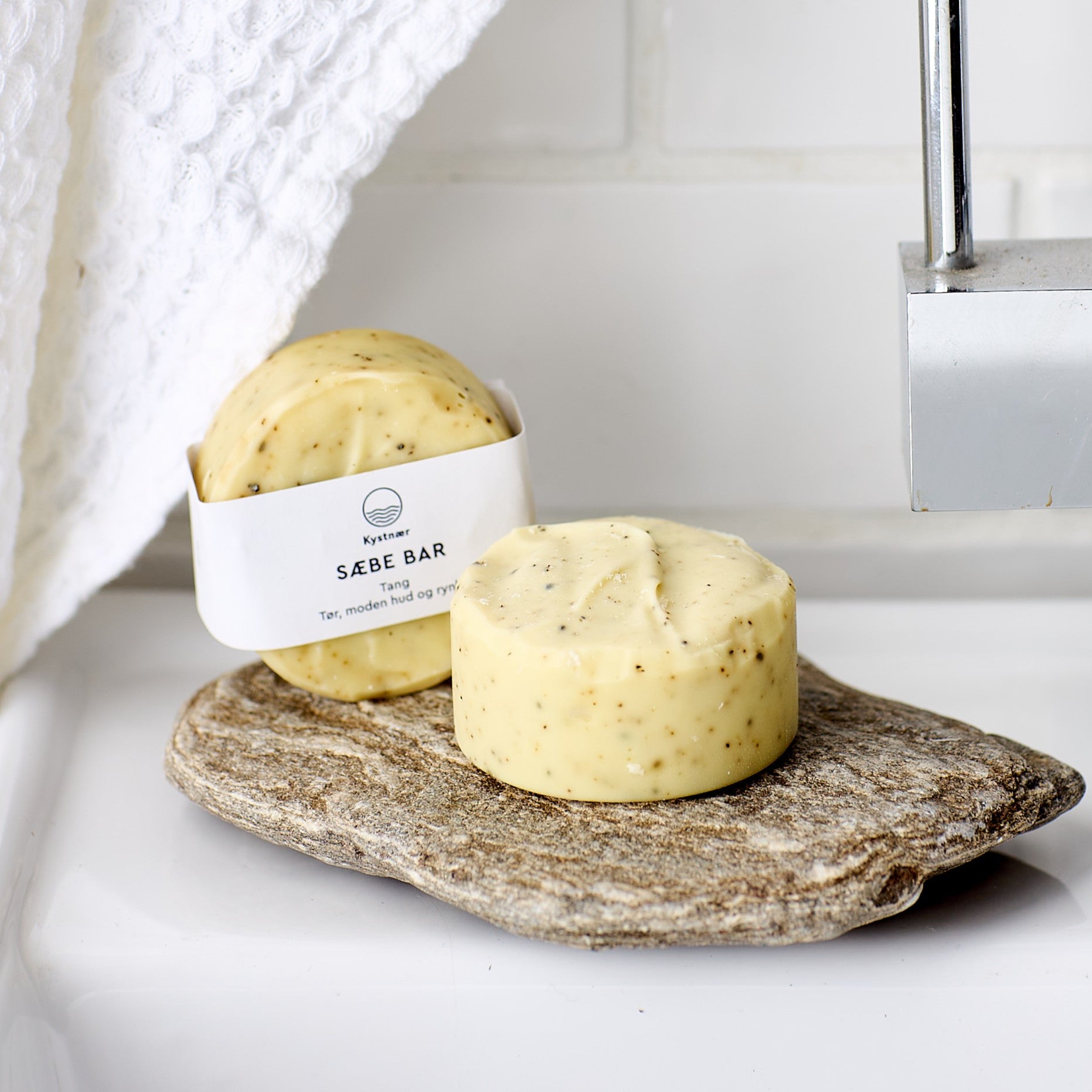 Tang er naturligt rig på mineraler, vitaminer og antioxidanter, som hjælper med at styrke og beskytte huden. Kombineret med kokosolie, koldpresset dansk økologisk rapsolie fra Nyborggaard og sheasmør giver sæben en blød og cremet skum, der efterlader huden ren, frisk og fugtet.