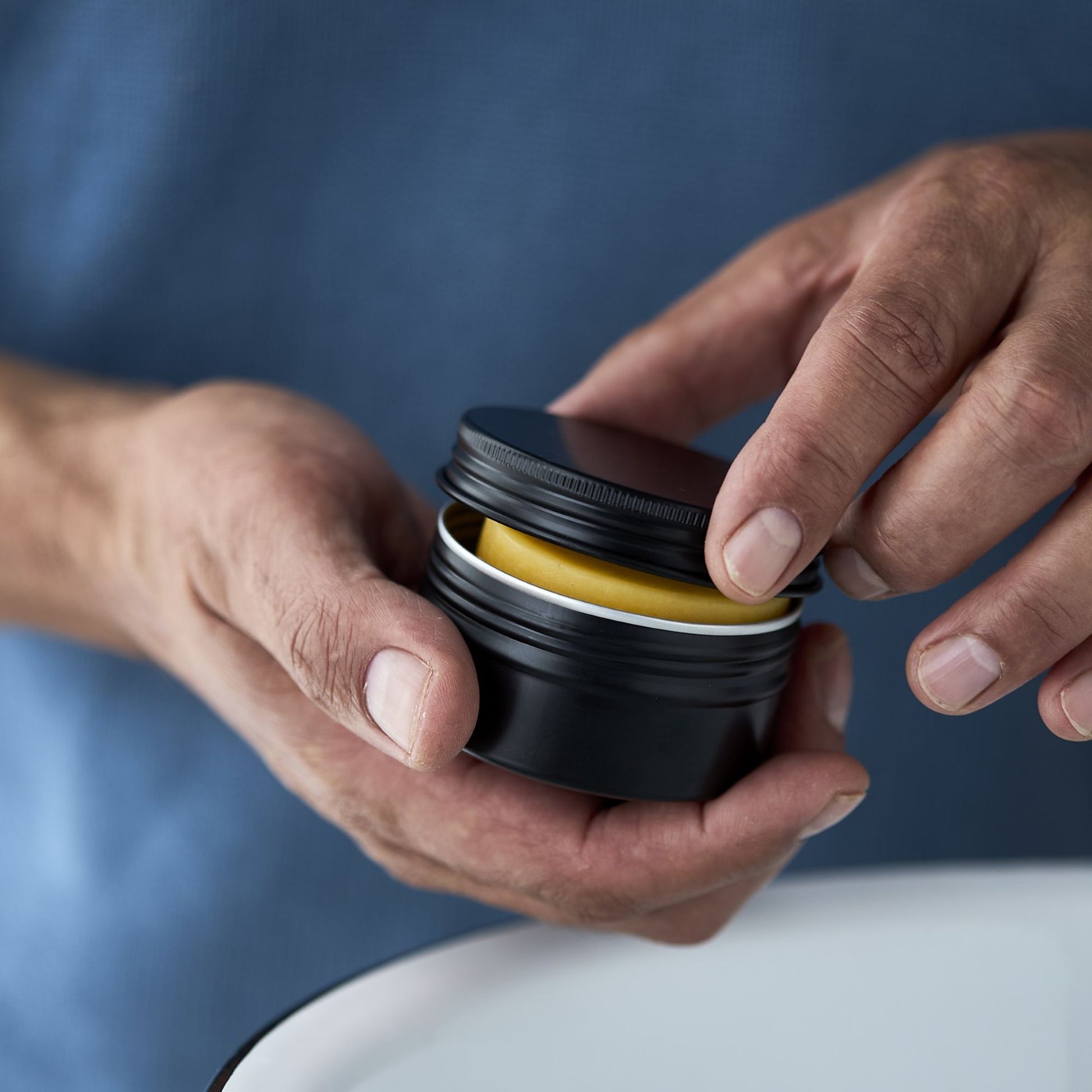 Skyl din sæbe bar efter brug og læg den på en loofah svamp i aluminium bøtten, sæt låg på og læg den i tasken igen.